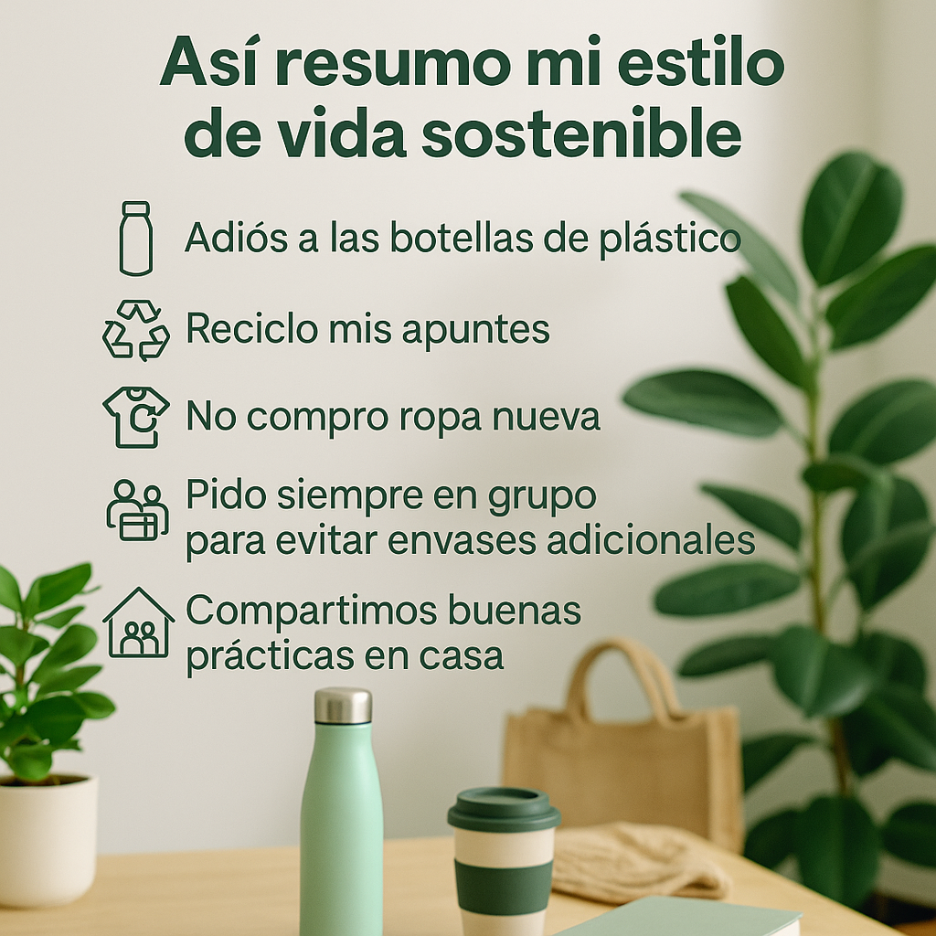 Ahora, todo tiene más sentido: se usan botellas reutilizables, se recicla bien el papel, se opta por ropa de segunda mano, se hacen pedidos grupales con menos residuos y Andrea se ha convertido en promotora activa de buenas prácticas.